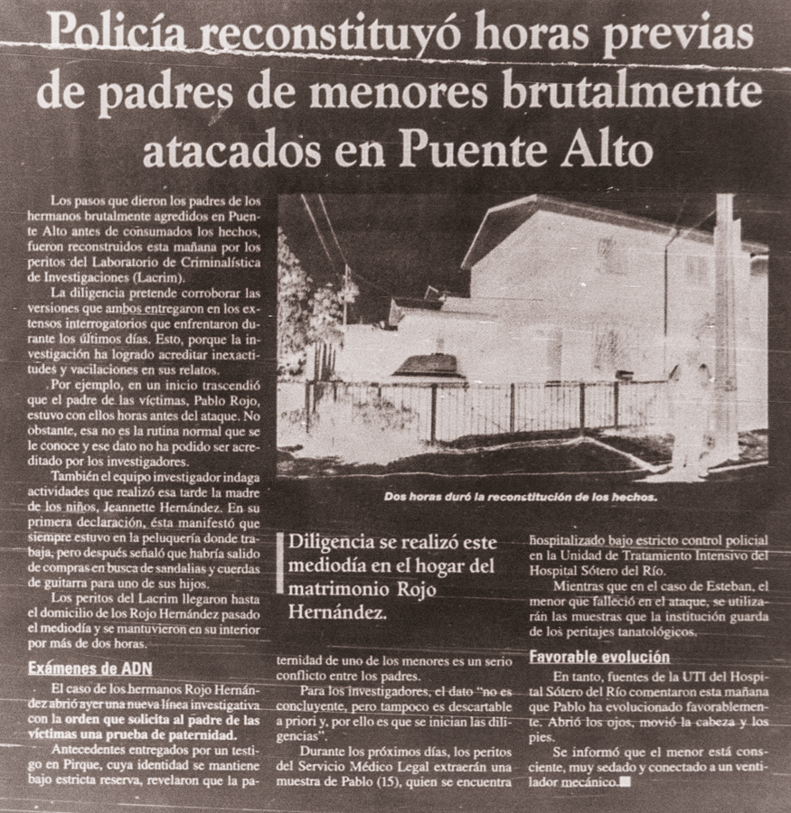 I heard very recently on television that after the crime the son who survived with neurological injuries did not see his father again, and instead looked for shelter with his mother’s family. This son, despite his brother’s death and the physical consequences of his mother’s hammering – half of his body paralyzed and cognitive failures – continued to visit her in jail and managed to request a special permit for her to go with him to his graduation from a technical school in Maipú. Thus, what happened after the apparent ending of this case is very complex and Greek tragedies, which represented subjects of certain royalty, no longer suffice to understand our histories of damage.